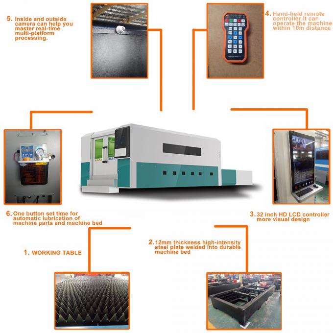 機械全体は、工作機械、運動部品、電気機器制御部品、その他の補助部品で構成されています。制御システムを介して3軸のモーションパーツを操作するため、ファイバーレーザー切断ヘッドを駆動して、安定した正確な高速移動を実現できます。 XおよびY軸は、オリジナルのパッケージングで高品質と精度のHIWINリニアガイドレールをインポートして採用し、作業台は機械全体を溶接するために角パイプで採用し、ストレスリリーフアニーリングトリート、メサの最大耐荷重は500KGを得ることができました、それもユニバーサルボールベアリング、機械外部セットアップ周辺クランプ装置、完全密閉型防塵装置、光電センサー、およびその他の正確な位置決め部品を使用して、伝送の精度を確保します。